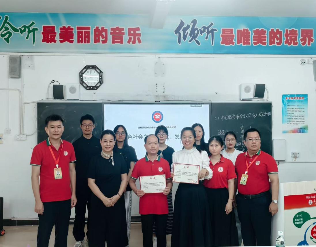 本次活动以“同课异构”教学研讨为主要形式,特邀琼海嘉积三中何顺老师与华东师范大学澄迈实验中学孟凡玲老师围绕高中政治必修一《中国特色社会主义》课程中的《中国特色社会主义的创立、发展、完善》一课进行现场教学展示。两位教师基于各自的教学理解与课堂实践,呈现出教学设计各异、教学风格鲜明的课堂教学,为观摩师生提供了宝贵的教研样本。在随后的研讨交流环节,两位授课教师分别就课程设计理念与课堂实施效果进行了说课与反思。