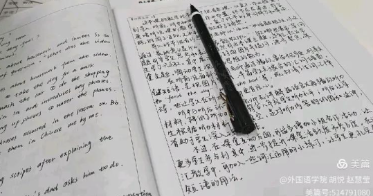 二、教研:在笔墨的耕耘中沉淀教育智慧案头摊开的教研笔记,是英语教学思考的具象化。左侧的英文备课手稿,细致规划着每一个教学环节——从“homework”的互动设计到“keyphrases”的拆解讲解;右侧的中文评课记录,字里行间是对“听力教学”“词汇拓展”的深度思索。海南师范大学的笔记本静静置于旁,仿佛在提醒我们:教育的成长,既源于课堂的实践,更扎根于教研的深耕。那支黑笔在纸页间的游走,是我们对英语教学规律的探寻,也是在教育之路上,以笔墨为犁、深耕不辍的执着印记。