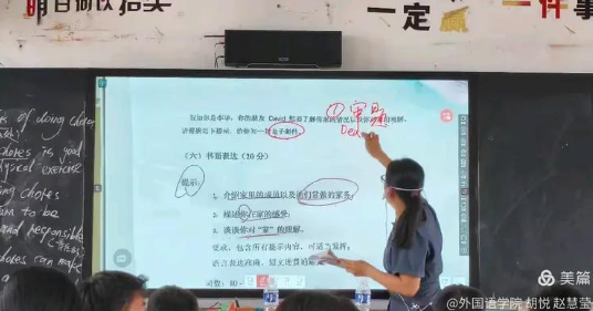 当清晨的阳光洒在海南陵水思源实验学校的操场上,一群身着印有“LSSY”校服的少年们正以饱满的精神开启新的一天。于我们而言,这段英语教育教学实习之旅,也在这充满活力的校园里,书写着属于青春与教育的动人篇章。一、课堂:在语言的花园里深耕细作在英语课堂上,“语法拆解+写作实训”是我们落实语言能力的关键环节。像指导学生完成“家的理解”主题邮件写作时,从“审题”到“内容拓展”,带着学生逐字逐句分析写作逻辑——如何介绍家庭成员的家务分工,如何抒发对“家”的情感,如何提炼对“家”的理解。黑板左侧的英文板书“Thebenefitsofdoingchores”,则从“独立和责任”等维度,把家务与英语表达、生活认知巧妙结合,让语言学习不止于语法,更扎根于生活。