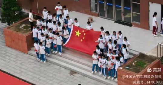 当巨幅五星红旗在校园里铺展成红色的海洋,学生们用英语吐露的心声,是最动人的和弦。“Ilovemymotherland”的稚嫩童声,“Mayourcountrybeprosperous”的真挚祈愿,让英语这门语言,在爱国的深情里化作了滚烫的诗行。