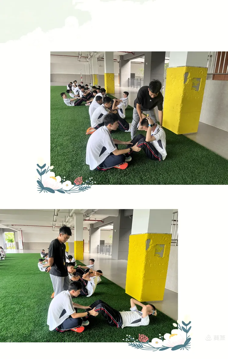 为有效调动学生参与体育训练的积极性、激活其运动潜能,我将“仰卧起坐帮帮练”这一富有互助精神的活动融入课堂,以替代传统体育训练中较为单调的内容。在平时的体育训练中,我会细细观察和发掘每一位学生在体育运动上的潜能,鼓励他们在蔚蓝的跑道上勇敢展现自己绽放属于自己的光芒。
