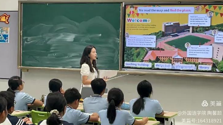 随着下课铃声响起,陶馨颉结束了她在七年级三班上的“实习第一课”。这次授课她选取“knowyourschool”的教学内容,用学校生活情境引入课文主题,用趣味游戏激发课堂激情。或许板书不够完美,或许节奏偶有偏差,但孩子们举起的小手、认真的点头,都成了最珍贵的肯定。