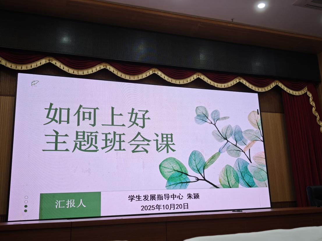 本次活动首先由朱颖老师作“如何上好主题班会课”设计主题讲座。朱老师认为育人先育心,而主题班会课的设计是关键。朱老师系统阐述了主题班会设计的基础理论与实操方法。她指出,主题班会在价值引领、能力提升和教育改革方面都具有重要意义。主题的选择可以结合时间节点和学校重点事件,如抗美援朝纪念日开展的爱国主义教育,或是“诚信主题”班会中的故事分享等,这类主题均能有效帮助学生树立正确价值观。接着朱老师详细介绍了德育类、智育类、美育类等不同类型的主题班会设计要求,并强调设计时要把握“学生主导、内容贴切、形式多样”三大原则,并让学生真正成为班会的参与者与组织者。