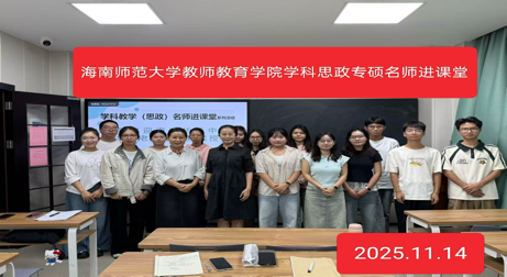 2025年11月14日下午,我院2025级学科教学(思政)硕士于实验楼402教室开展了“名师进课堂”活动。本次活动由教师教育学院陈连珠教授主持,特邀海南华侨中学高中政治学科组长、高级教师、海南省优秀思政课教师周立颖老师进行分享交流。