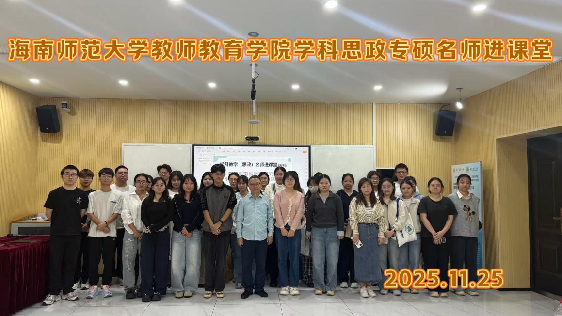2025年11月25日上午,我院2024级、2025级学科教学(思政)硕士于生科楼118教室开展“名师进课堂”活动。本次活动特邀海南省教育研究培训院初中政治教研员朱小超老师进行分享交流。