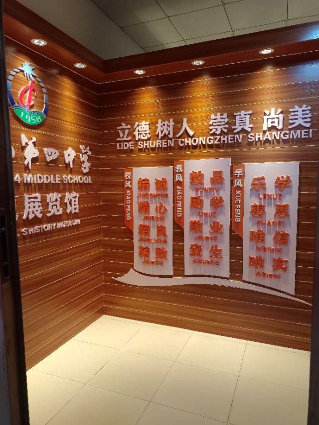 校史馆是海口四中的“时光宝库”,一踏入便被浓厚的历史底蕴所包围。门口的校徽墙熠熠生辉,下方镌刻着学校的办学理念——“以人为本,全面发展”。馆内陈列着学校的发展历程图、老照片、历届毕业证、获奖证书、师生捐赠的珍贵物件,每一件都诉说着学校的变迁与辉煌。从建校初期的简陋校舍到如今的现代化校园,从最初的少数师生到如今的桃李满天下,一张张照片、一段段文字,生动展现了几代四中人的坚守与奋斗。我们还看到了学校培养出的优秀校友事迹介绍,他们在各行各业发光发热,成为学校的骄傲。林老师详细为我们讲解着每一个展品背后的故事,让我们感受到,校史馆不仅是历史的记录者,更是精神的传承者,它凝聚着学校的文化内核,激励着一代又一代四中学子砥砺前行。