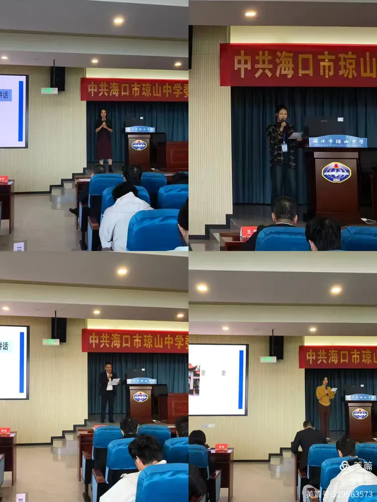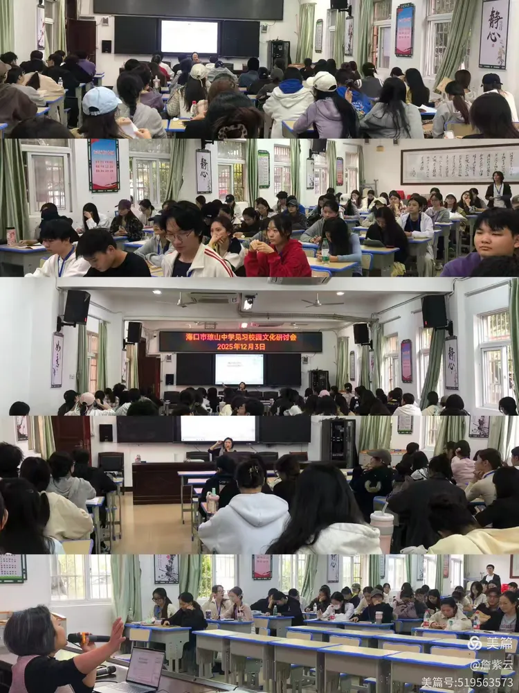 陈鸫老师结合琼山中学的办学历史、育人理念与校园实践,全方位解读了学校的校园文化内涵。从传承红色基因、深耕传统文化,到践行素质教育、培育时代新人,陈老师用生动的案例、详实的数据,展现了琼山中学“以文化人、以美育人”的办学特色,让在场学子深刻感受到校园文化对学生成长、学校发展的重要意义。