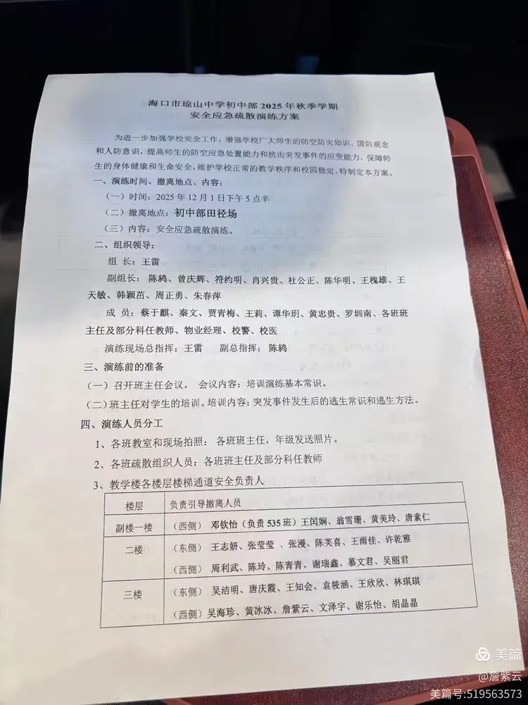 下午时分,琼山中学的校园内响起急促的消防警报,演练正式拉开帷幕。在琼山中学老师的统一指挥下,我院见习学子与中学师生们迅速响应,严格遵循“弯腰、捂鼻、低姿、快速”的原则,沿着预定疏散路线,有序疏散各楼层学生撤离至校园操场。