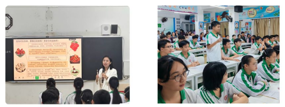 活动伊始,来自海口北师大附中的章心怡老师带来公开展示课《人间有“味”是清欢——品苏轼诗中的三重味》。本节课以课题“诗语士文,海南印记”为核心设计原点,将课题拆解为“诗之语文”、“士之精神”、“琼之印记”三大核心维度,构建“以美食诗为切入——以三重味为脉络——以琼之印记为落点”的教学路径。课堂上,章老师通过文本解读与情境互动,引导学生感受本土文化与古典文学的融合魅力。师生互动频繁,现场氛围活跃,展现了课题教学实践的生动成果。